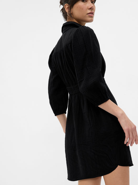 Crinkle Gauze Mini Shirt Dress