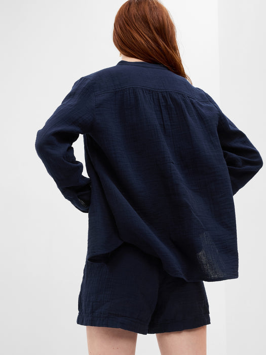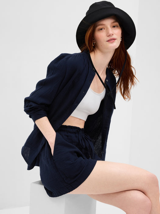 Soft gauze-y texture with double the crinkle. Made to feel like summer in 100% breathable cotton.