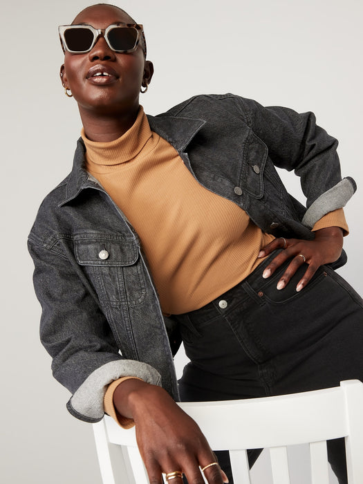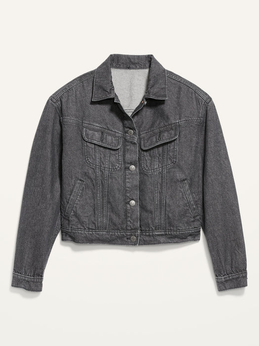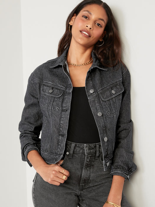 Cropped Black-Wash Non-Stretch Jean Jacket for Women
