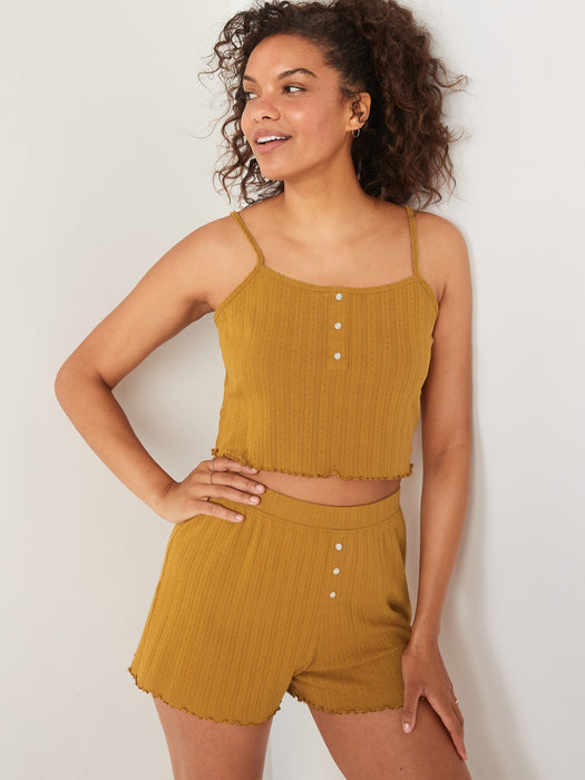 Cropped Pointelle-Knit Henley Cami Top for Women - Yellow