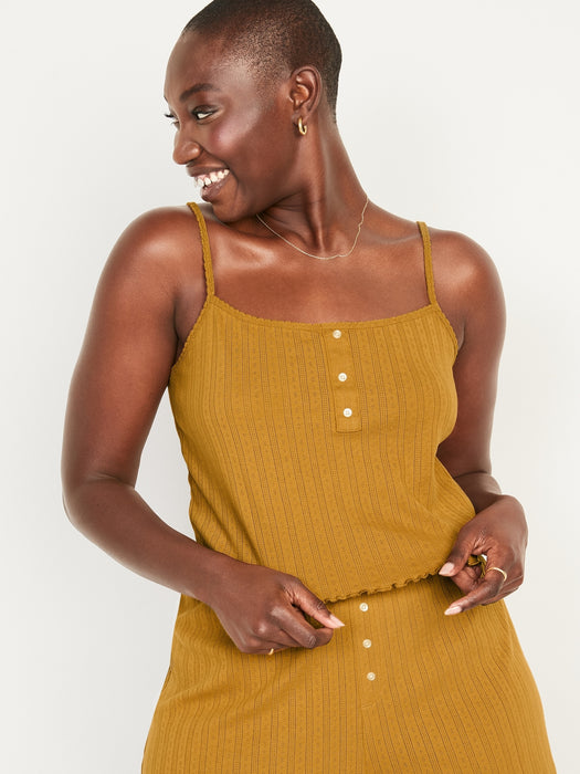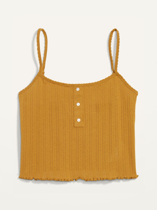 Cropped Pointelle-Knit Henley Cami Top for Women