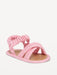 - Puffy faux-leather upper, with cross-strap and elasticized faux-leather ankle strap.