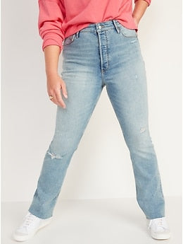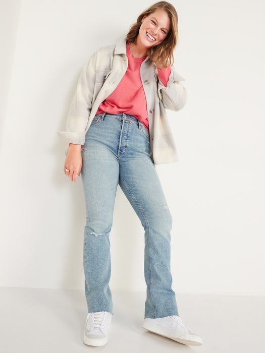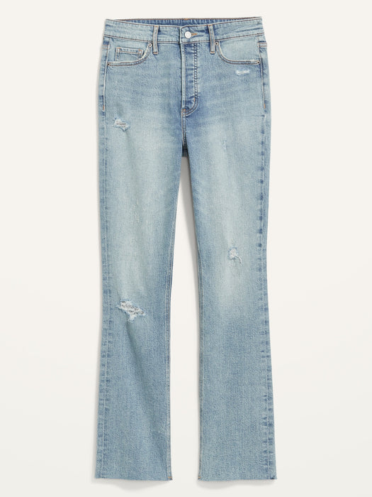 Extra High-Waisted Button-Fly Kicker Boot-Cut Ripped Cut-Off Jeans for Women