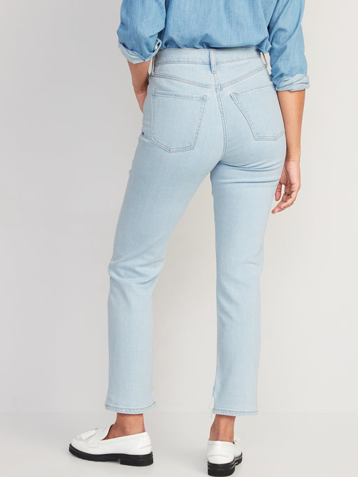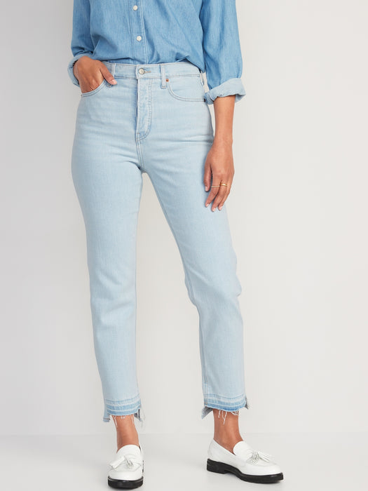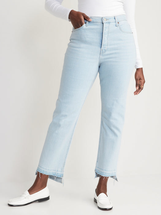 Extra High-Waisted Button-Fly Sky-Hi Straight Cut-Off Jeans