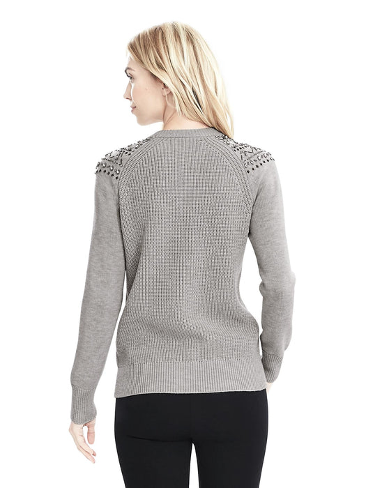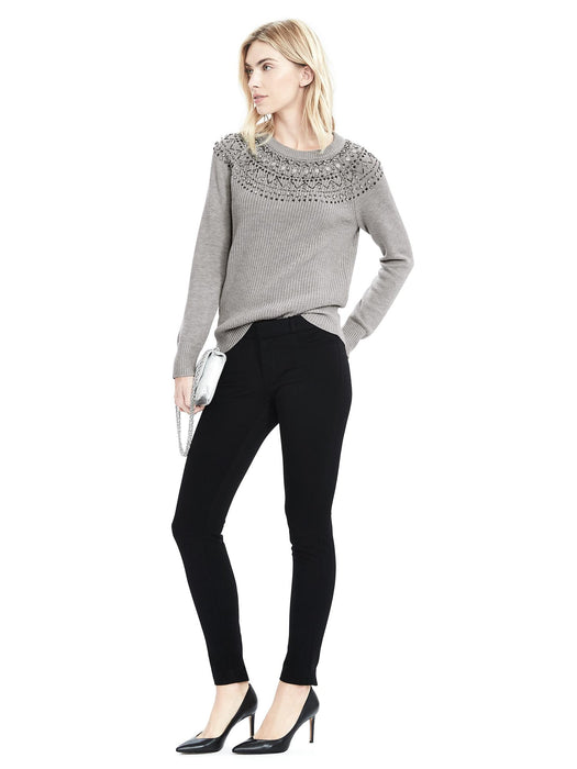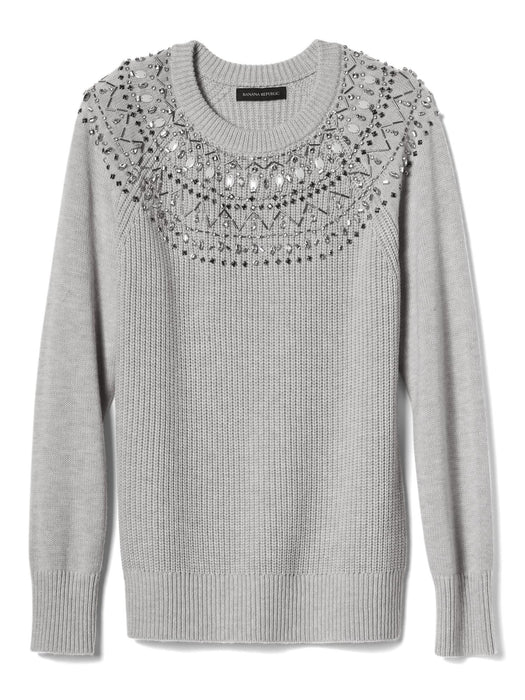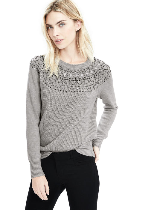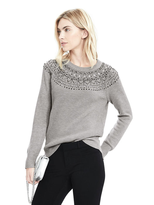 Fair Isle Embellished Sweatshirt - Light gray heather