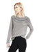Long sleeve. Semi-fitted. Ribbed neck, cuffs and hem. Channel quilt stitch. Hits at the hip.