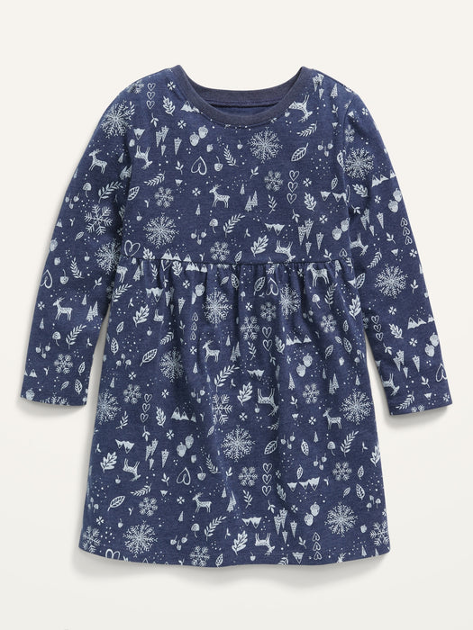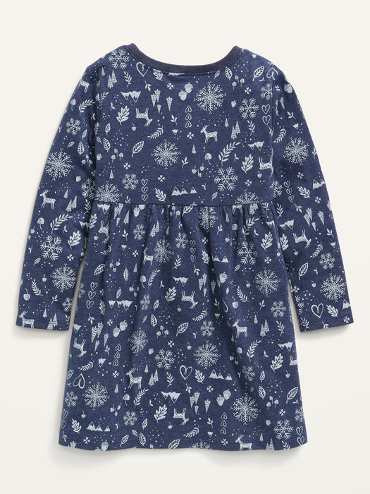 Fit & Flare Long-Sleeve Jersey Dress for Toddler Girls