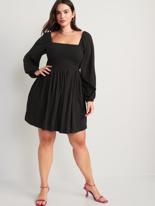 Fit & Flare Puff-Sleeve Smocked Mini Dress for Women
