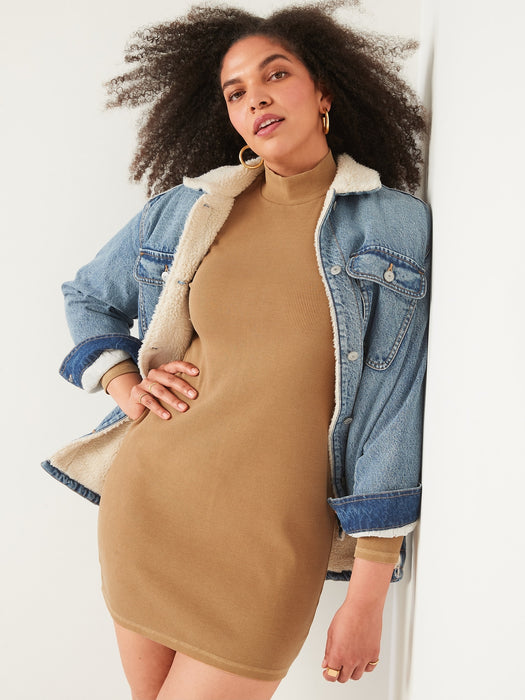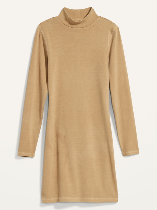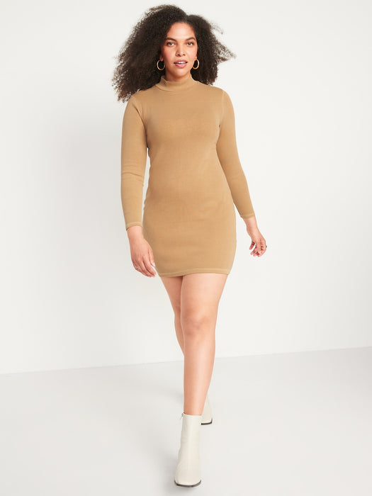 Fitted Long-Sleeve Mock-Neck Rib-Knit Mini Dress for Women
