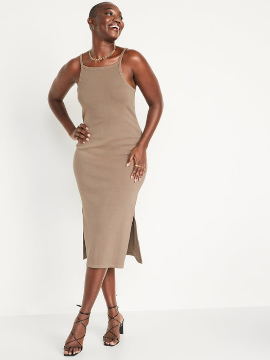 Fitted Rib-Knit Midi Cami Dress for Women
