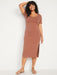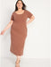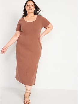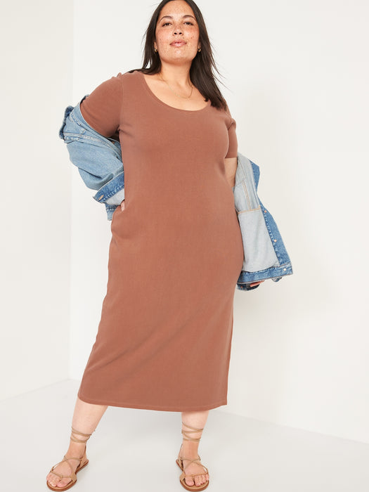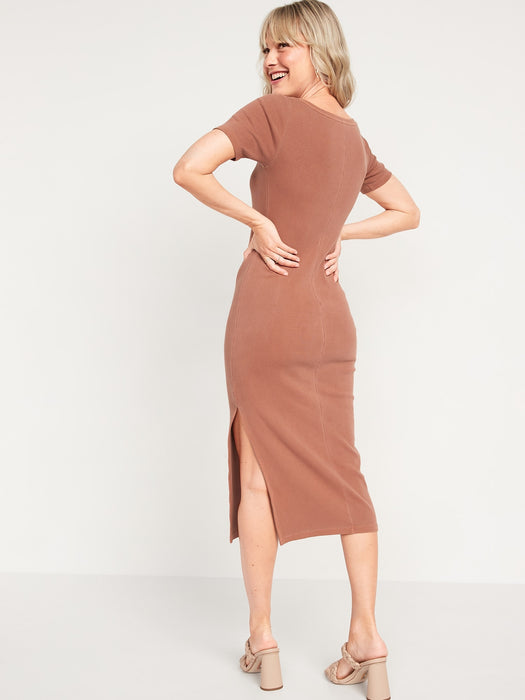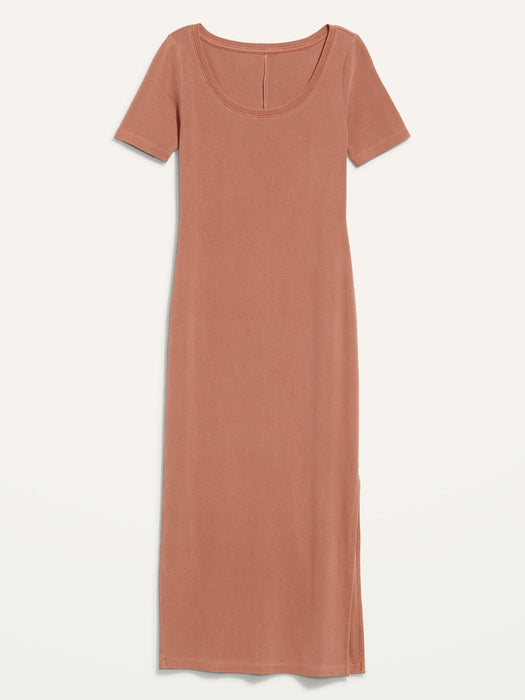 Fitted Short-Sleeve Rib-Knit Maxi Dress for Women