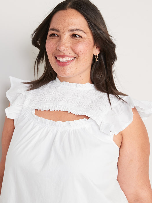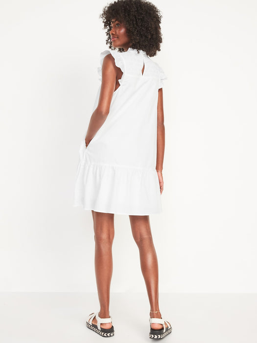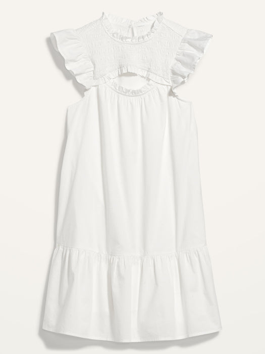 Flutter-Sleeve Cotton-Poplin Smocked Cut-Out Mini Swing Dress for Women