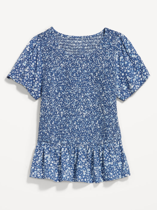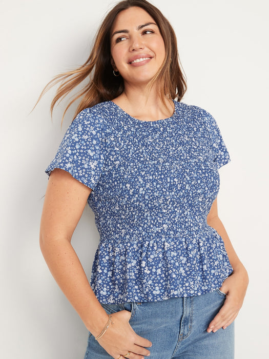 Flutter-Sleeve Smocked Peplum Blouse for Women