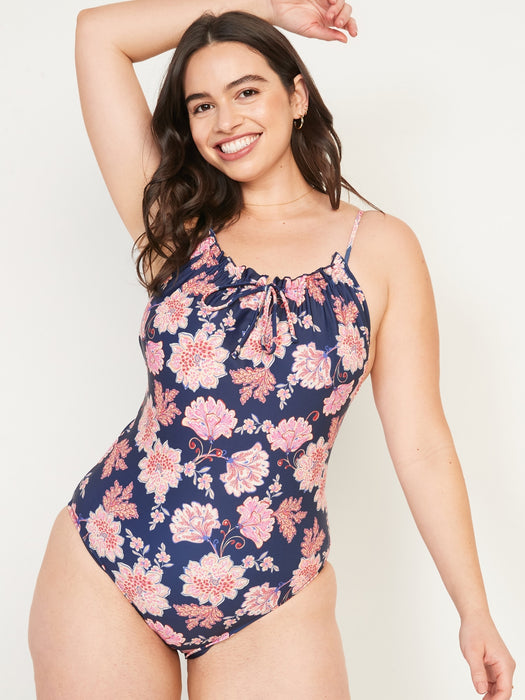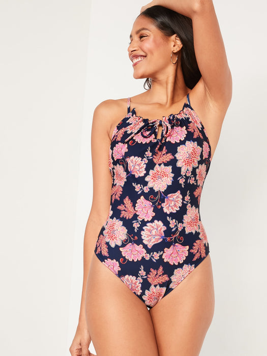 Gathered Keyhole One-Piece Swimsuit for Women