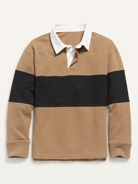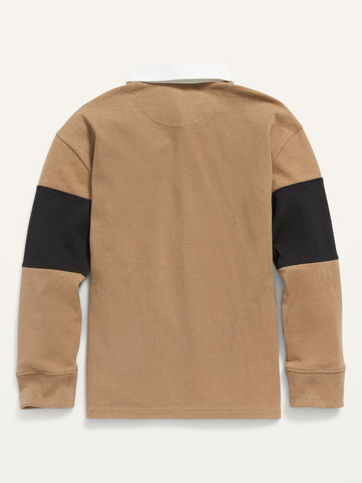 Gender-Neutral Color-Blocked Long-Sleeve Rugby Polo Shirt for Kids