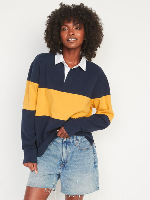Gender-Neutral Long-Sleeve Color-Block Rugby Polo Shirt for Adults
