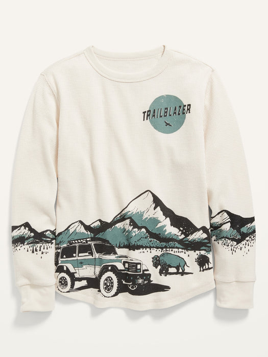 Gender-Neutral Thermal-Knit Long-Sleeve Graphic T-Shirt for Kids