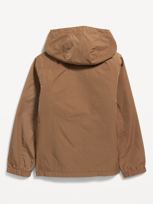 Gender-Neutral Water-Resistant Hooded Zip Utility Jacket for Kids