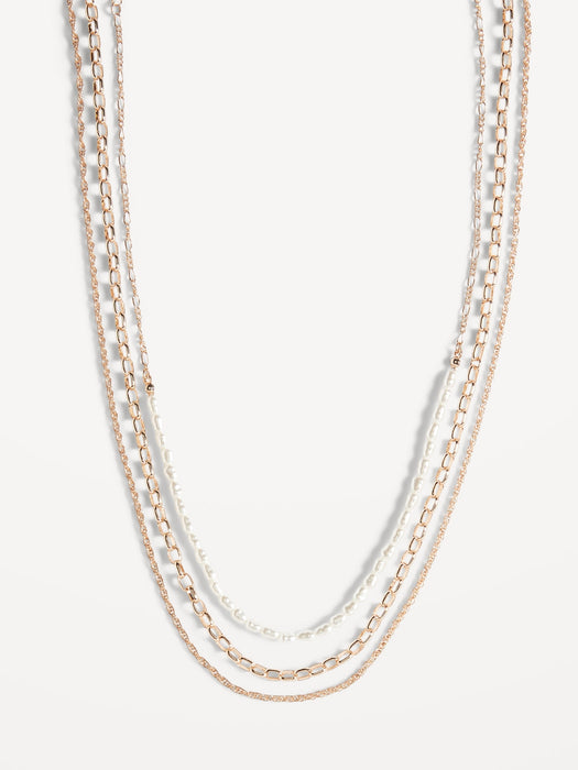 Gold-Tone Faux-Pearl Bead Layer Chain Necklace for Women