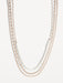 - Layered triple-row choker necklace features 1 row of gold-tone metal delicate chain links & irregular-shaped faux-pearls, 1 row of paper clip chain links, and 1 row of twisted chain links.