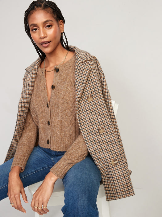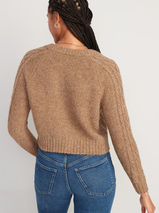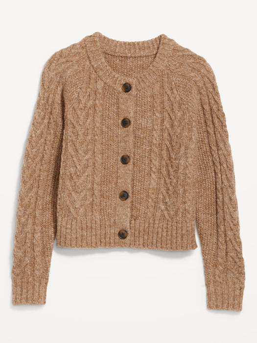 Heathered Cable-Knit Cardigan Sweater for Women