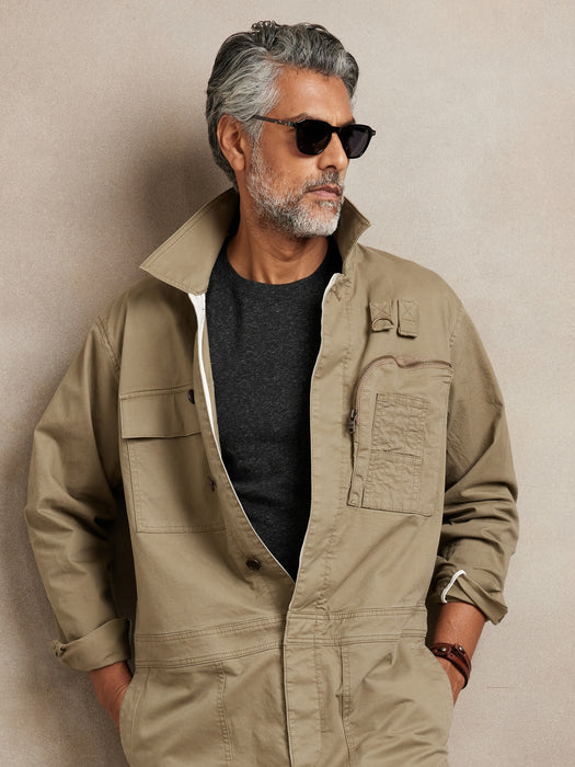 - A favorite returns. This versatile jumpsuit is based on a piece from our archives, crafted from a sturdy cotton twill accented with lots of pockets, antique brass hardware, and a relaxed silhouette. Reach for it on days that call for a little adventure.