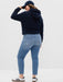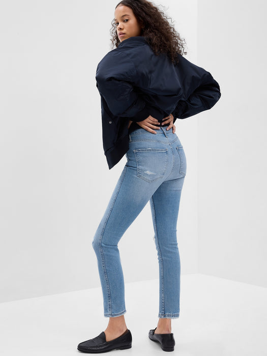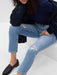 - Look: A distressed five-pocket jean in a light wash.