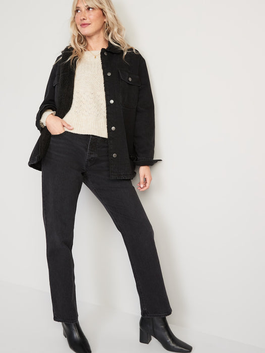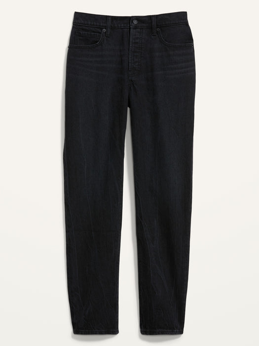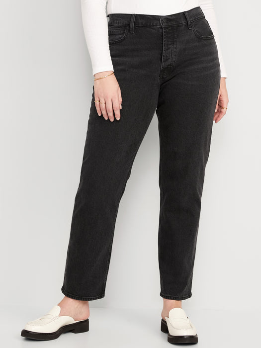 High-Waisted Button-Fly Slouchy Straight Black-Wash Jeans for Women - Black