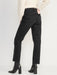 High-Waisted Button-Fly Slouchy Straight Black-Wash Jeans for Women