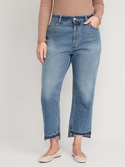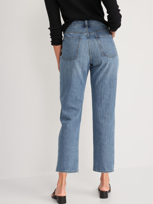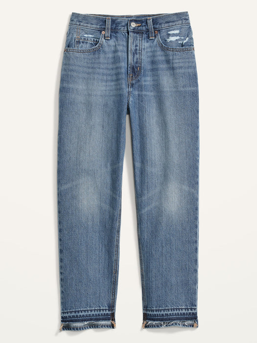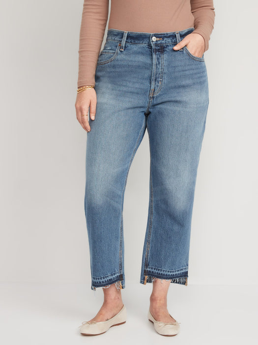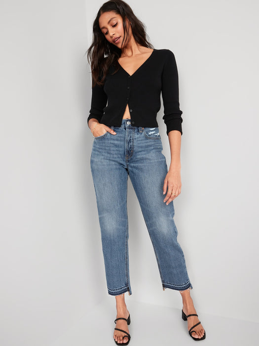 High-Waisted Button-Fly Slouchy Straight Cropped Non-Stretch Cut-Off Jeans for Women