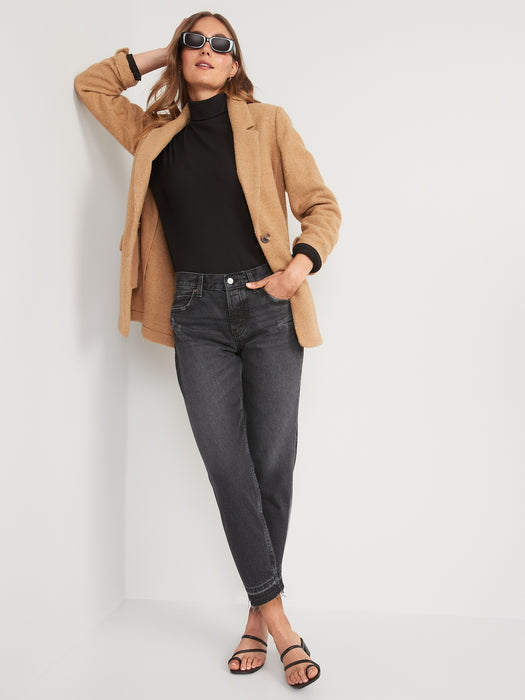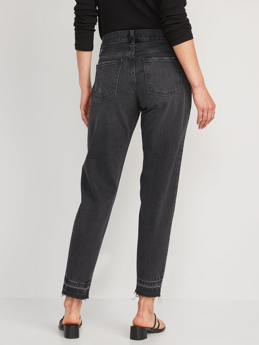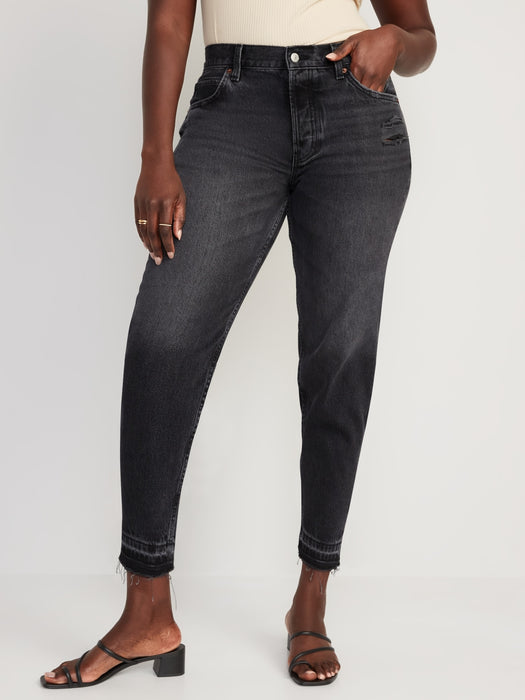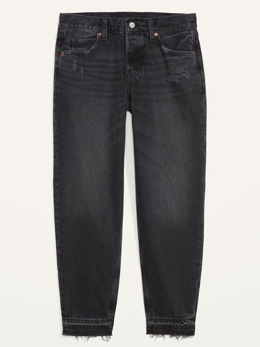 High-Waisted Button-Fly Slouchy Taper Black-Wash Cut-Off Non-Stretch Jeans for Women