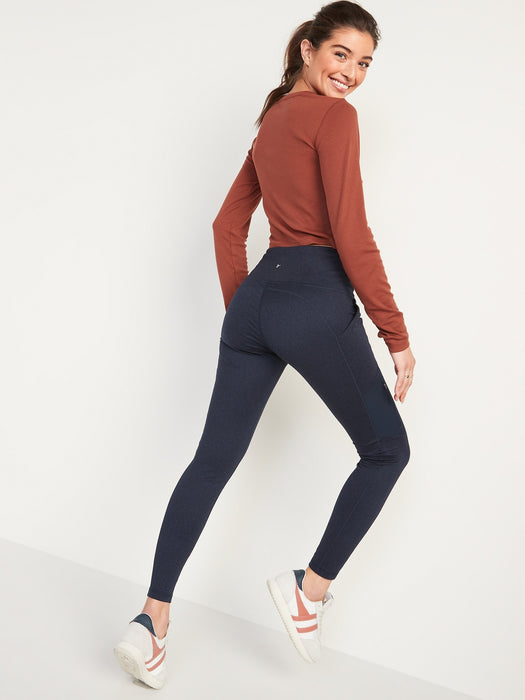 High-Waisted CozeCore Hybrid Zip-Pocket Leggings for Women - Blue