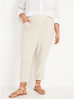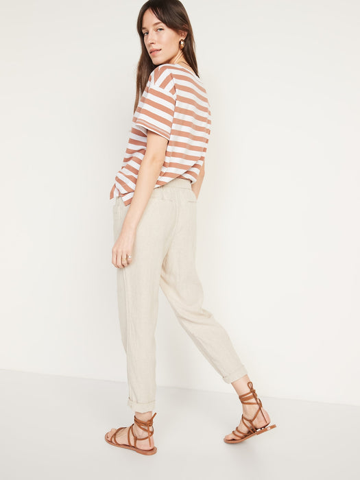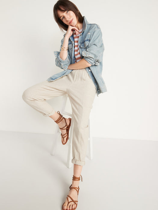 High-Waisted Cropped Linen-Blend Pants for Women