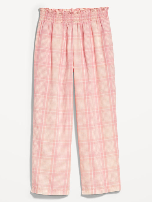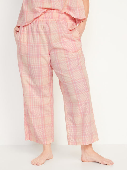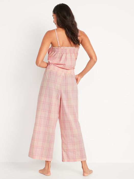 High-Waisted Cropped Smocked Plaid Pajama Pants for Women