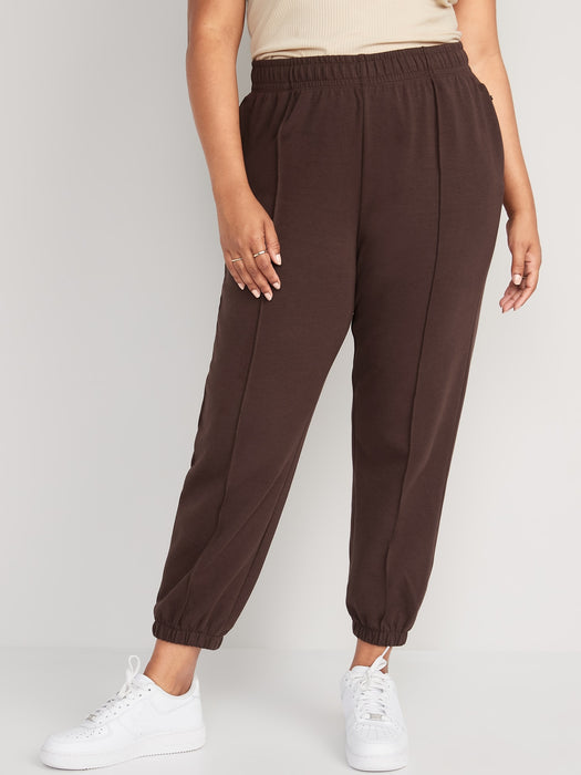 High-Waisted Dynamic Fleece Pintucked Sweatpants for Women - Brown