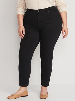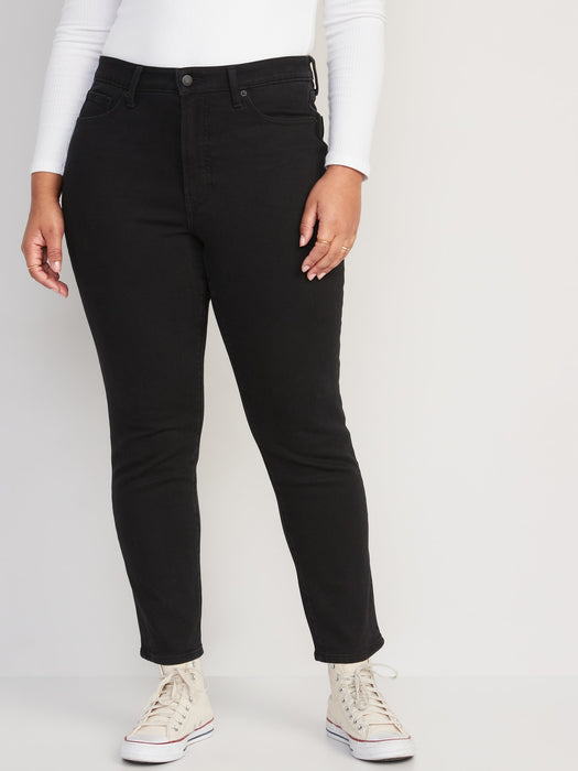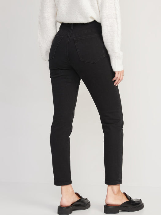 High-Waisted OG Straight Black-Wash Built-In Warm Ankle Jeans for Women