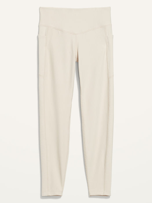 High-Waisted PowerSoft Rib-Knit Side-Pocket 7/8-Length Leggings for Women