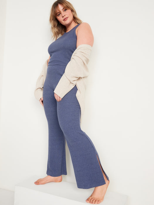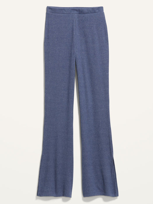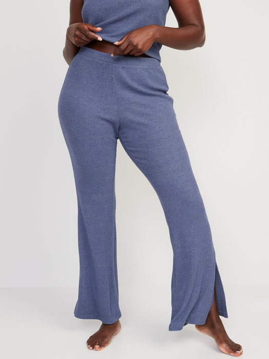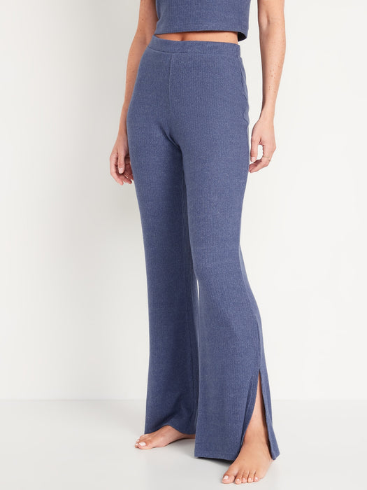 High-Waisted Rib-Knit Split Flare Lounge Pants for Women