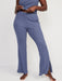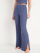High-Waisted Rib-Knit Split Flare Lounge Pants for Women - Blue