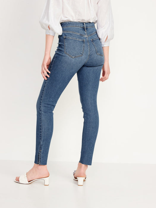 High-Waisted Rockstar Super-Skinny Side-Slit Cut-Off Ankle Jeans for Women