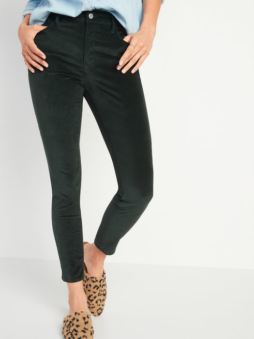 High-Waisted Rockstar Super Skinny Velvet Jeans - Green