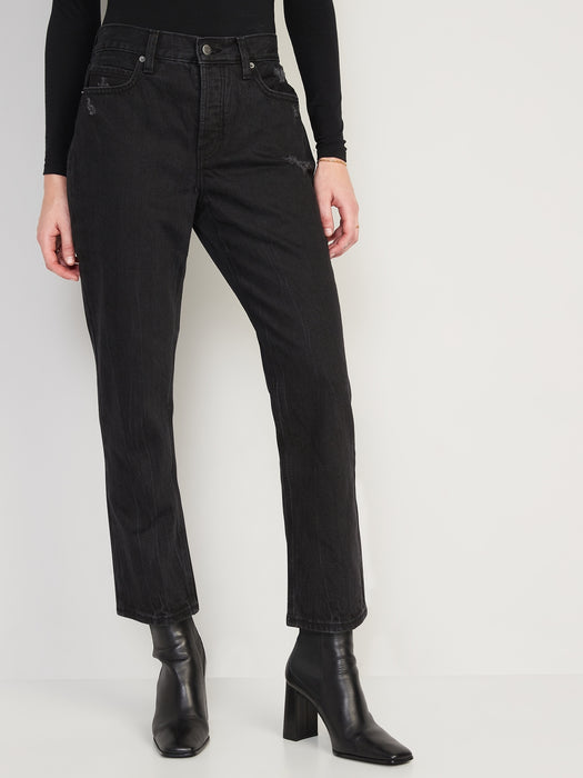 High-Waisted Slouchy Straight Cropped Distressed Jeans for Women