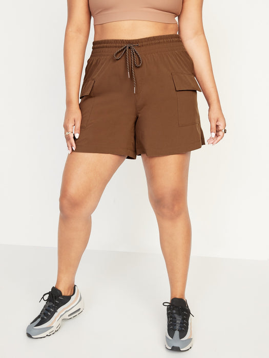 High-Waisted StretchTech Cargo Shorts for Women -- 5-inch inseam - Brown