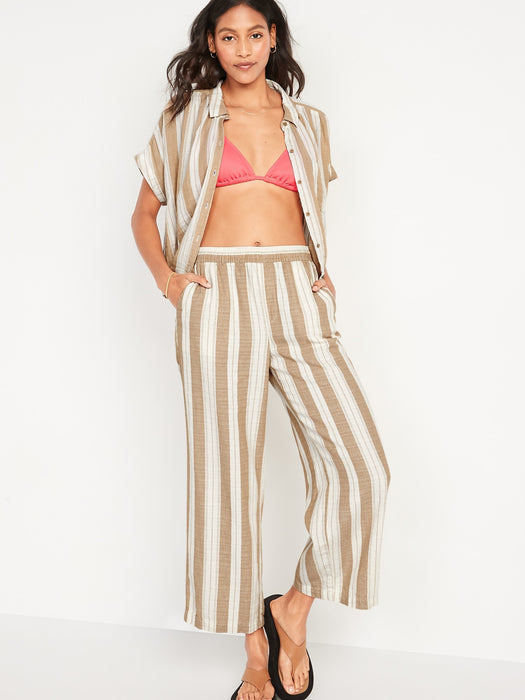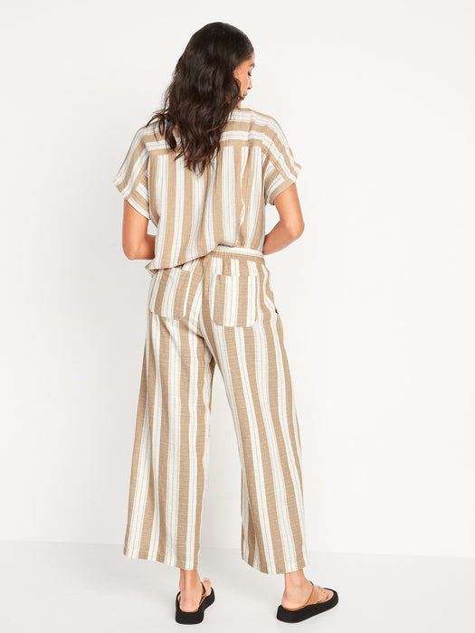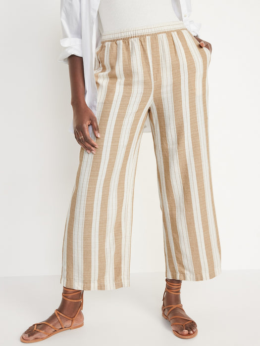 High-Waisted Striped Linen-Blend Wide-Leg Pants for Women