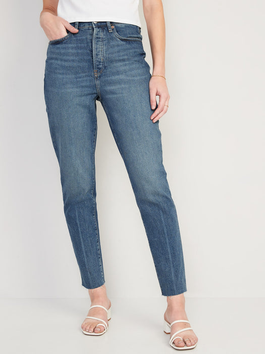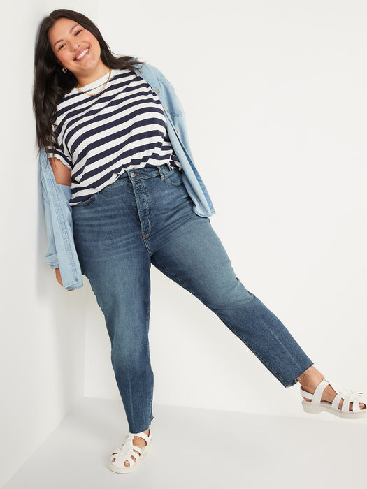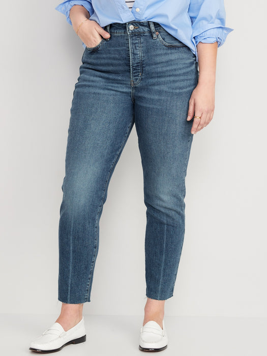 Higher High-Waisted Button-Fly O.G. Straight Cut-Off Jeans for Women