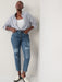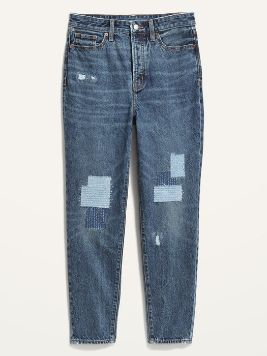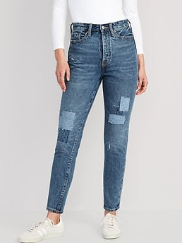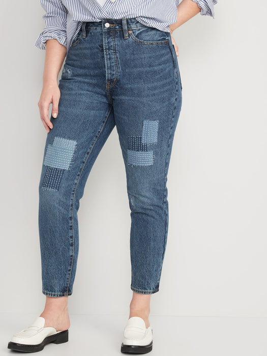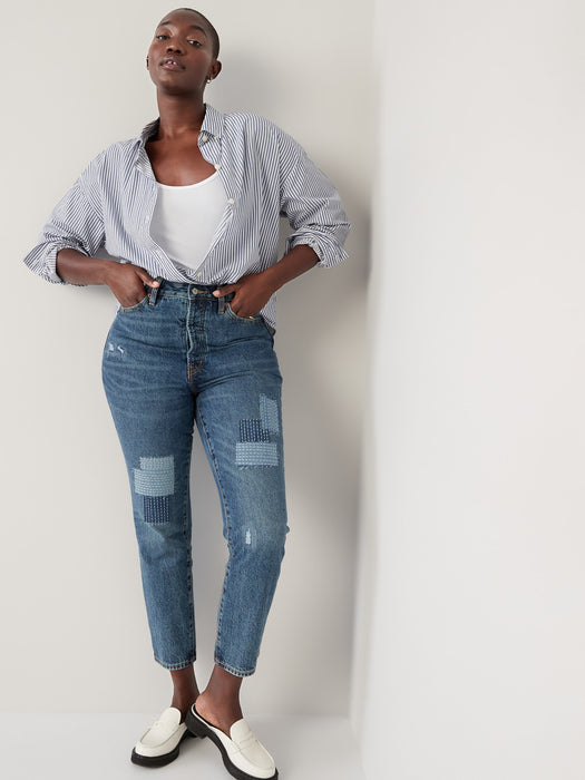 Higher High-Waisted Button-Fly OG Straight Patchwork Non-Stretch Jeans for Women