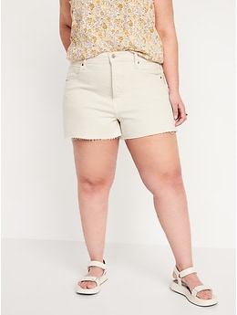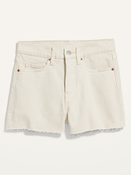 Higher High-Waisted Button-Fly Sky-Hi A-Line Ecru Cut-Off Jean Shorts for Women -- 3-inch inseam