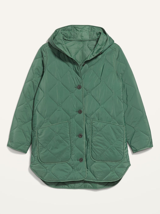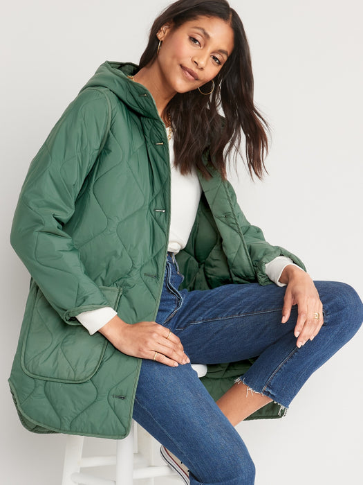 Hooded Quilted Utility Coat for Women - Green
