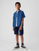 - Button at center front (sizes 4-8 have a hook & bar closure beneath faux snap for easy on and off), zip fly.
