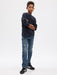 - Medium indigo wash with distressed detailing.